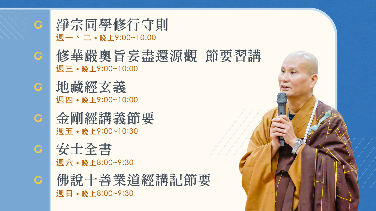 4/6~12新莊念佛堂恭請悟道和尚啟講《觀世音菩薩耳根圓通章》,網路直播,歡迎大家線上聽講,同霑法益。