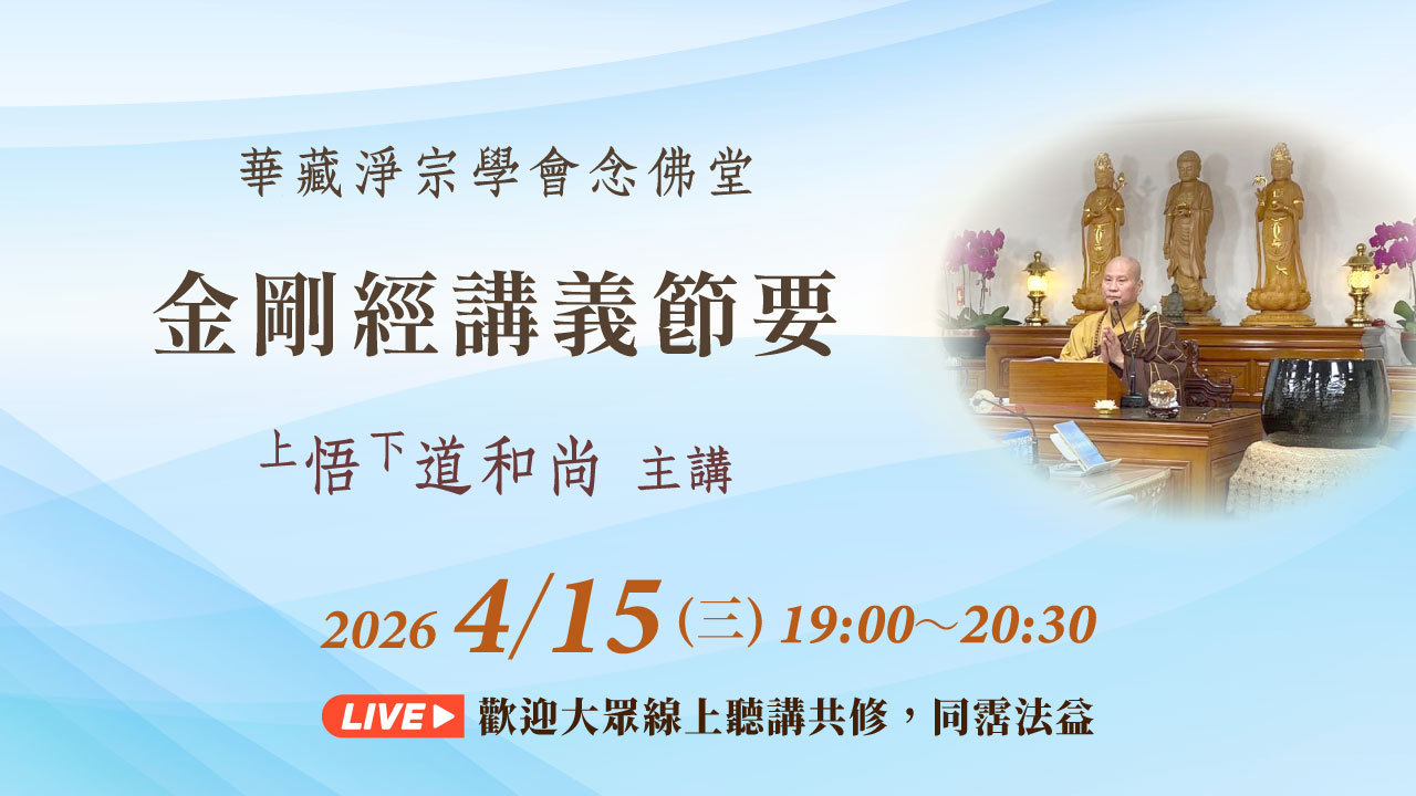 3/26(四)晚上7:00華藏念佛堂恭請悟道和尚宣講《佛說十善業道經講記節要》,網路直播,歡迎大家線上聽講,同霑法益。相關資訊敬請參閱…