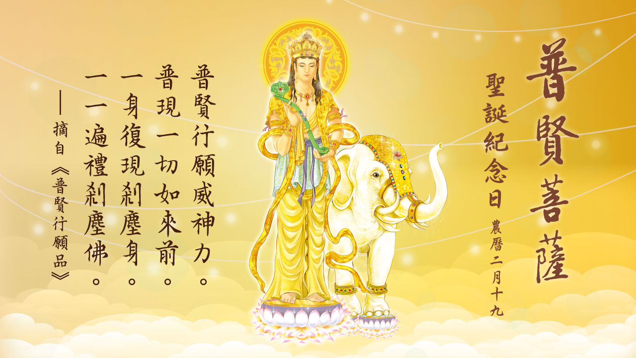 精選開示 普賢菩薩聖誕紀念日|悟道法師開示 農曆二月二十一日是普賢菩薩聖誕日。普賢菩薩在《華嚴經》中代表行門,與代表解門的文殊菩薩相輔相成。解門是智慧,行門是實踐。大智文殊師利,大行普賢菩薩,二者缺一不可。 2026 年 4 月 7 日
