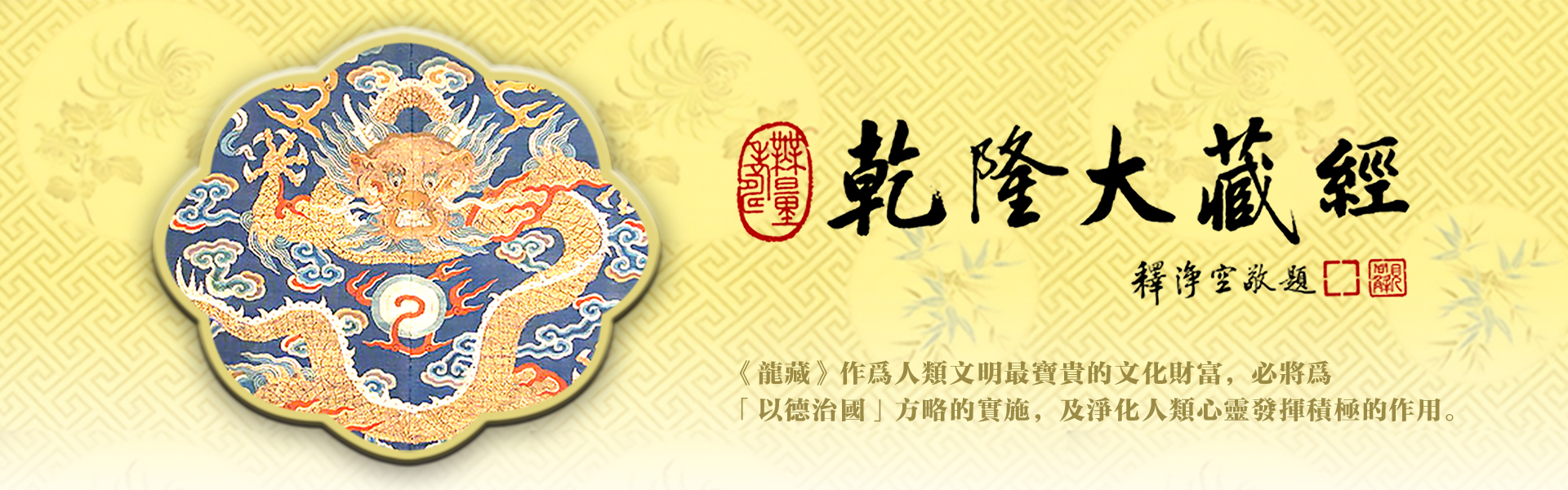 因此本會依循淨空老和尚的指示,從二00二年一月二十四日起,開始提倡印製《乾隆大藏經》,理事長悟道法師,並發起「一人一元,隨喜發心」活動,至今已印製完成八千五百套《龍藏》,另有燙金版一千五百套亦在印製中,將分贈世界各地之國家圖書館、大學圖書館及寺廟典藏。讓臺灣地區每一個人都有機會發心,以此功德迴向法界眾生消災化劫,祝願世界和平。